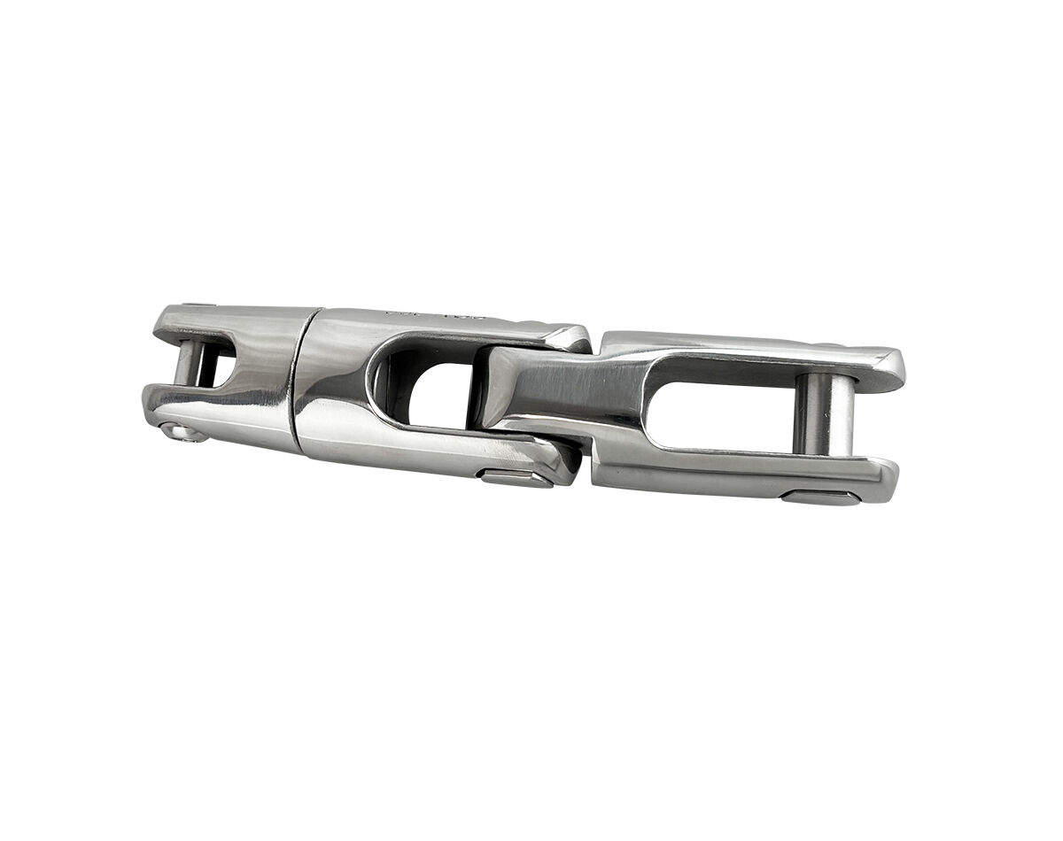 This swivel features a double-action design that allows both the anchor and chain to rotate independently, reducing twists and tangles in any direction.