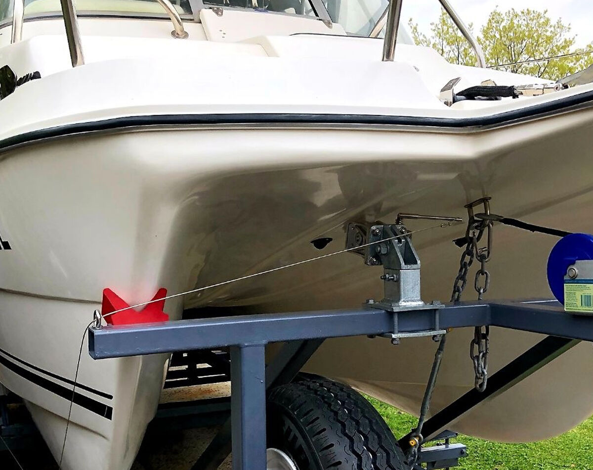 Installation is straightforward, requiring attachment to the trailer bow post using four bolts and nuts. The universal mounting ‘tube’ can be easily customized to fit various boat and trailer configurations, accommodating everything from small aluminum vessels to larger fiberglass boats or catamarans.