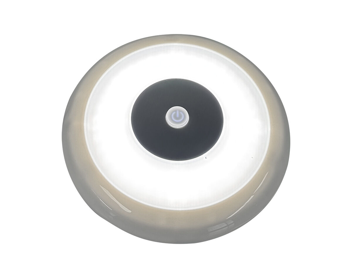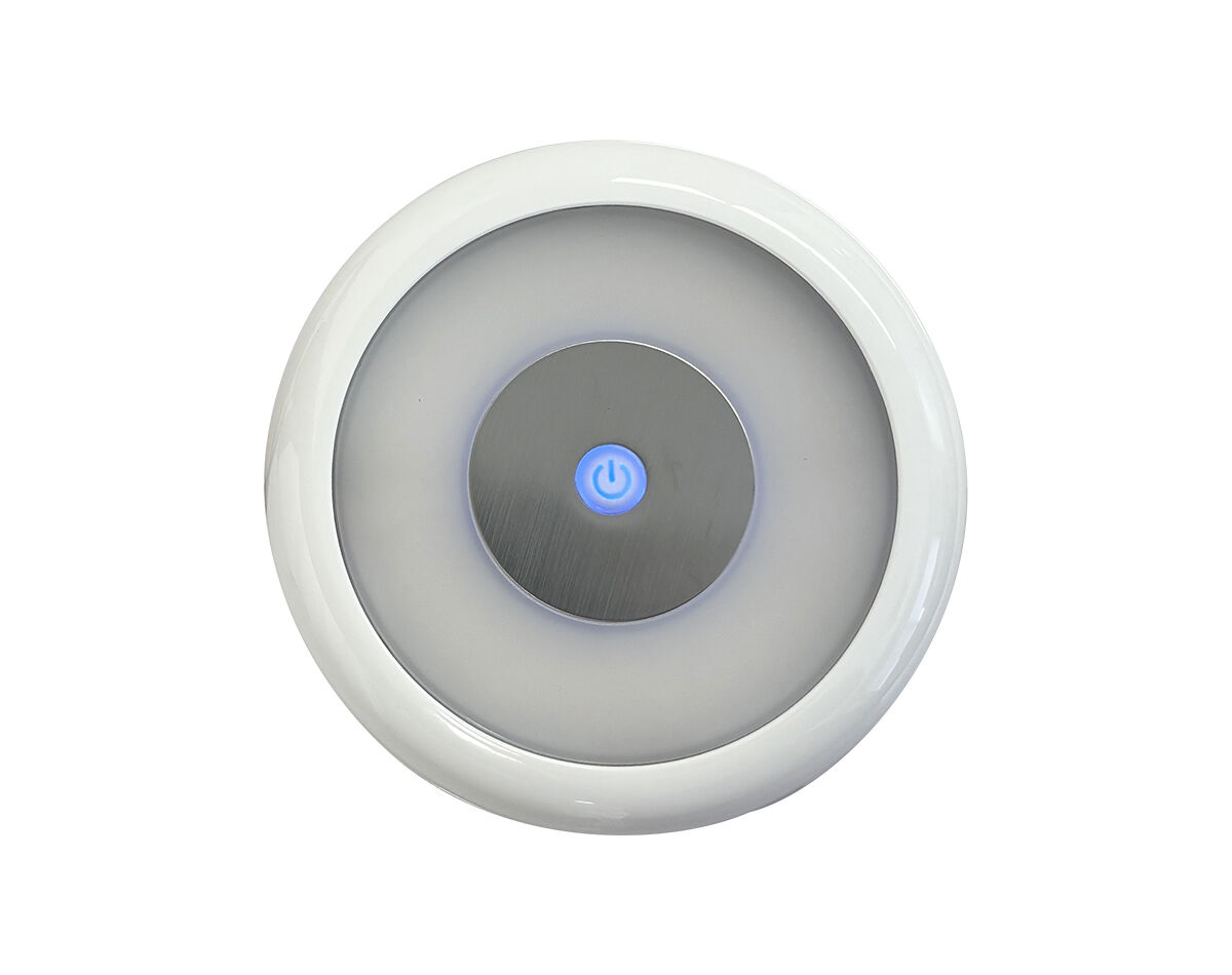 Sleek and modern round LED cabin light, designed specifically for marine interiors. Featuring an integrated dimmable touch switch with soft blue indicator light.