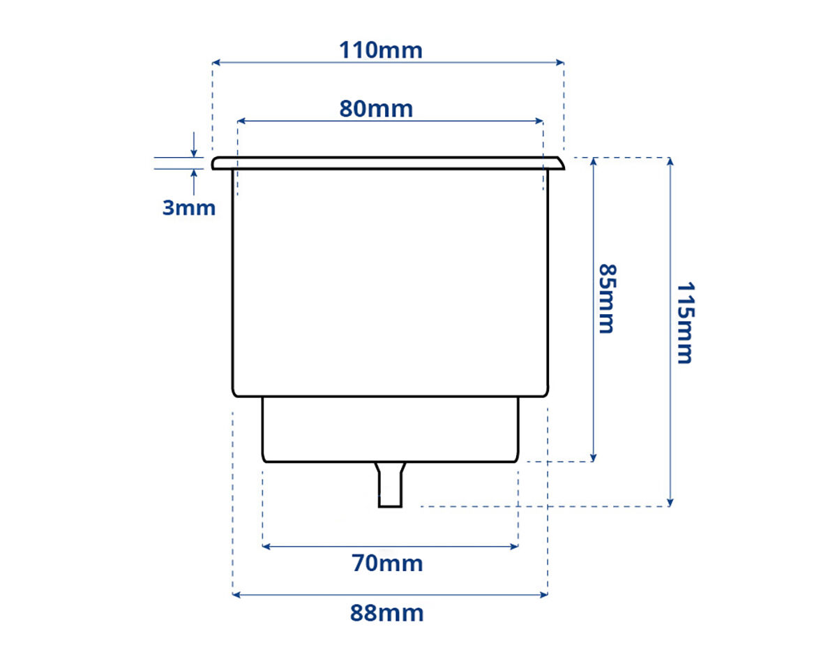 It’s wide enough to fit a standard wine bottle, while the inner step securely holds cans, stubbies, and smaller drink containers. A removable rubber-plugged drain with a moulded outlet to suit a 10mm hose (if required) makes it completely sealable, yet easy to unplug for draining and cleaning.