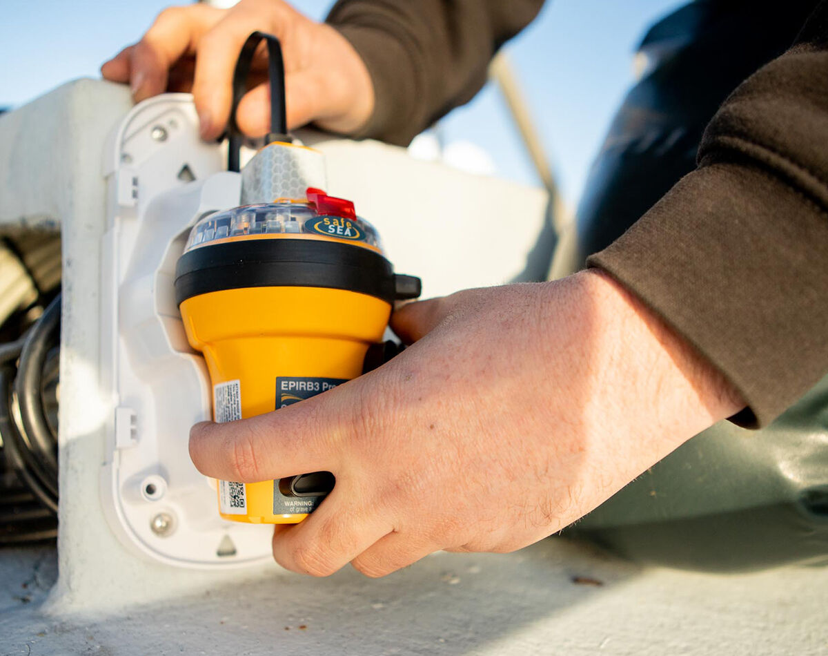 The EPIRB3 Pro comes with a Category I auto-release Float Free Housing. If your vessel sinks, the housing automatically releases the beacon, allowing it to rise to the surface and activate on its own. This ensures the distress signal is sent even if no one can reach the EPIRB during a sudden or chaotic emergency on board.