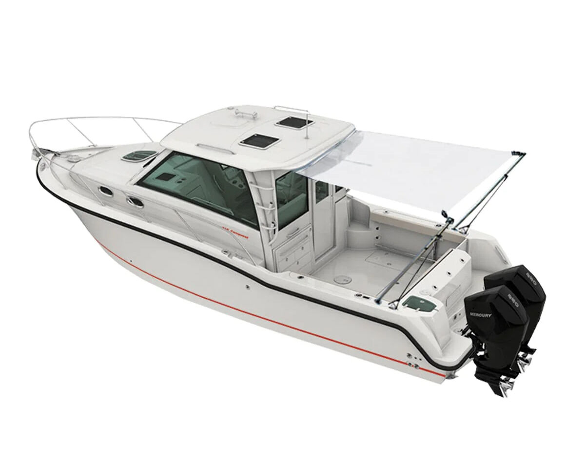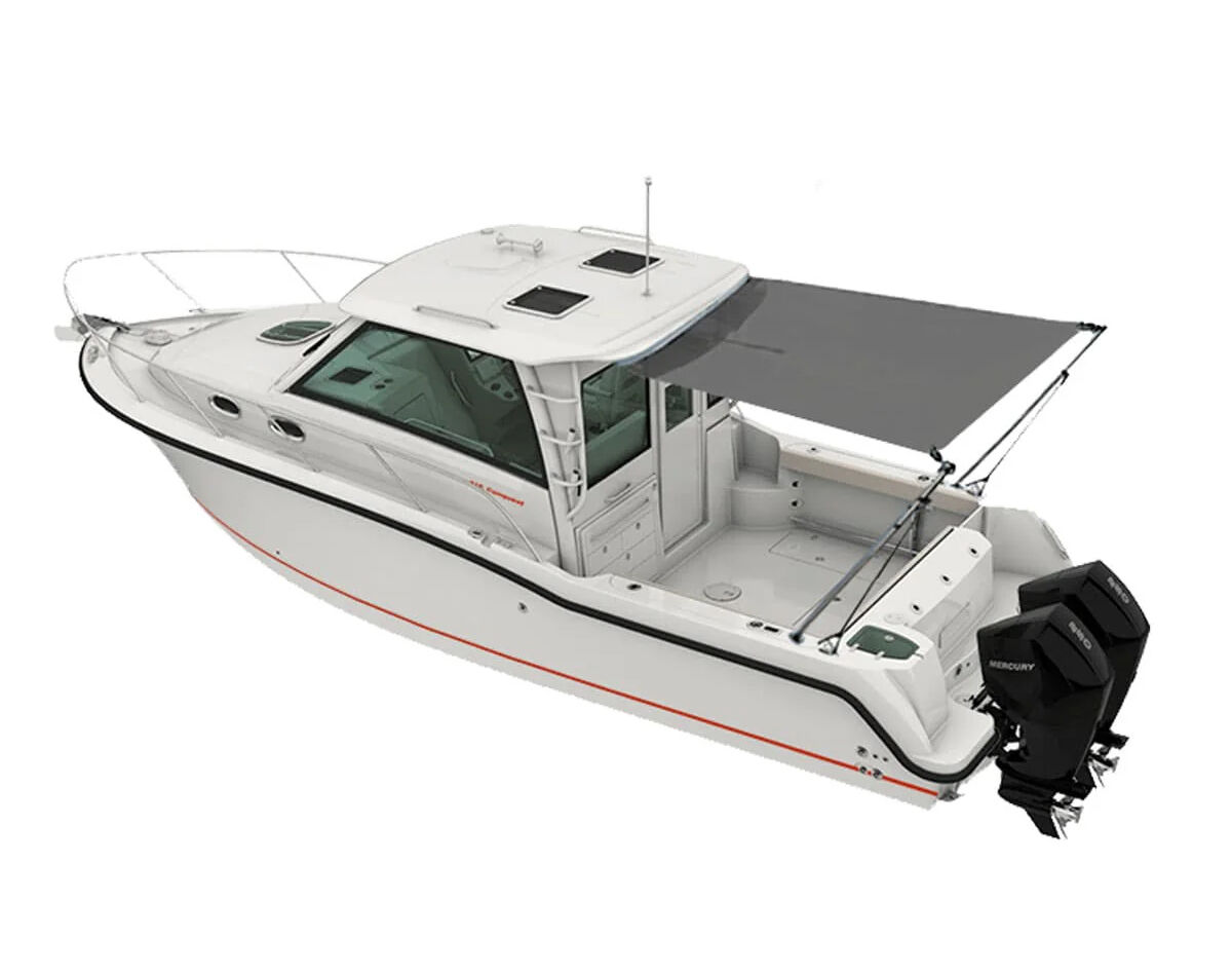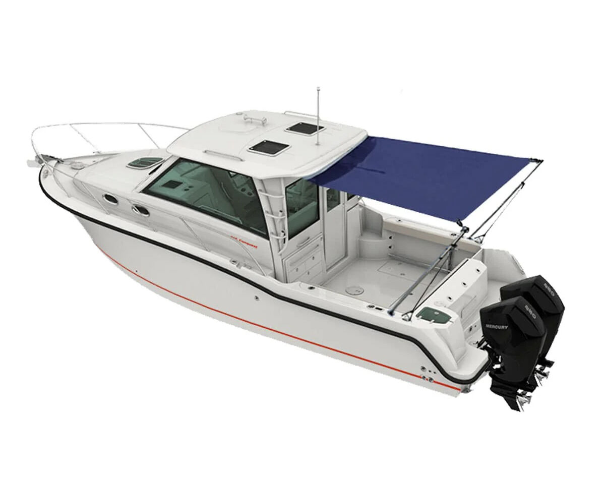 Mount securely to your hard top at the front, with the telescopic poles fitted into existing rod holders at the stern, and rear straps attached to cleats or rails.