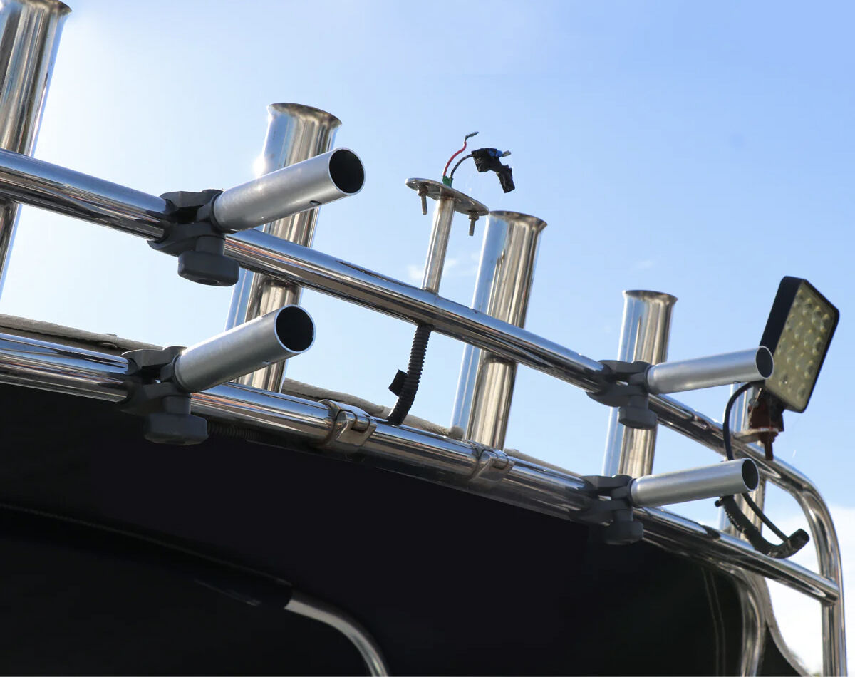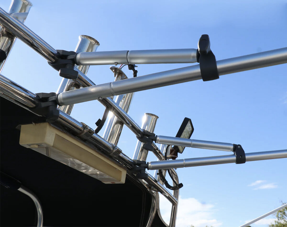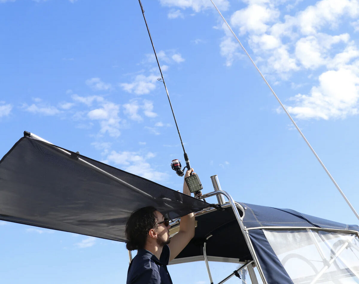 Mount it straight onto your existing bimini or rocket launcher rod rack tubing, it's designed to hold firm without flapping around.