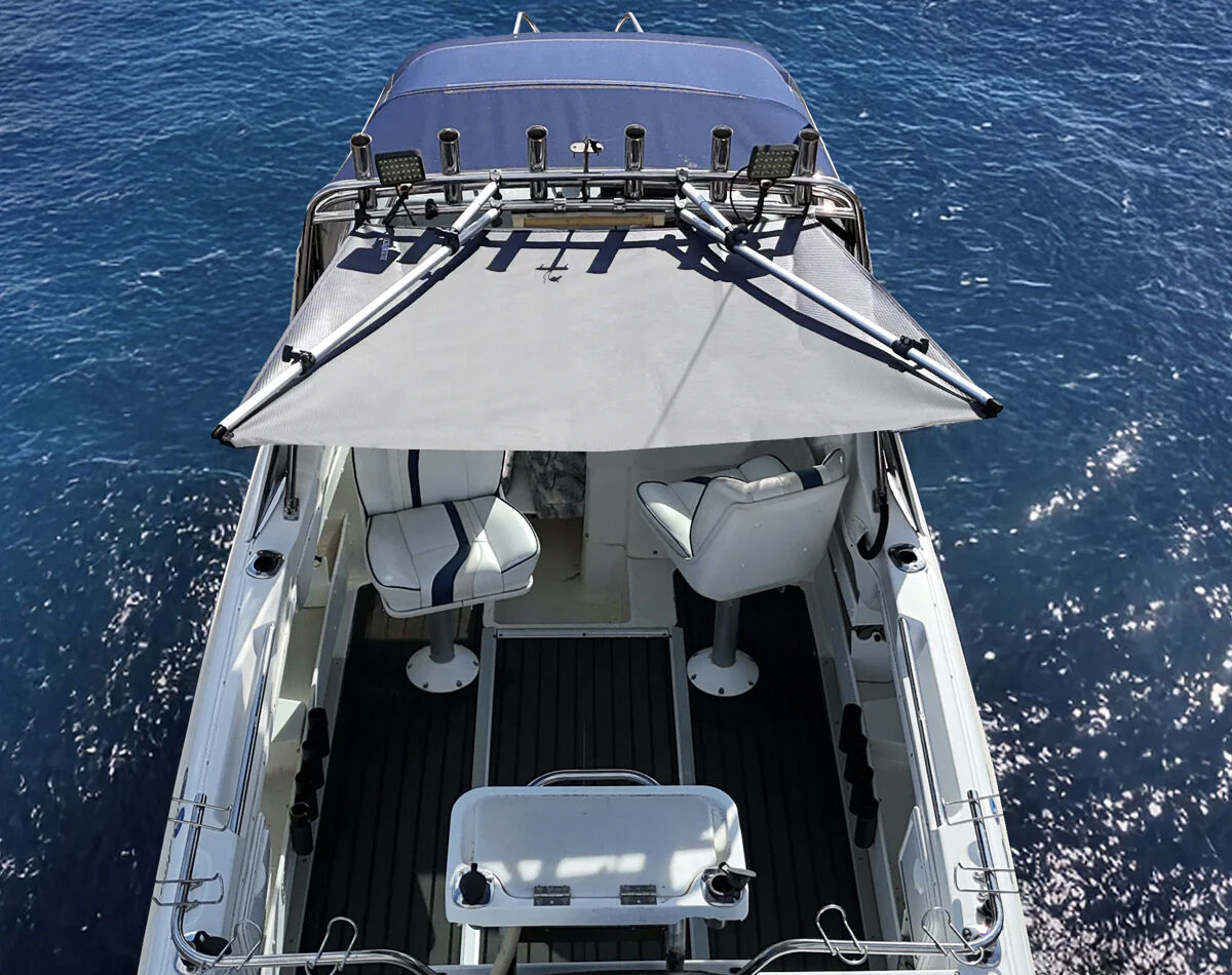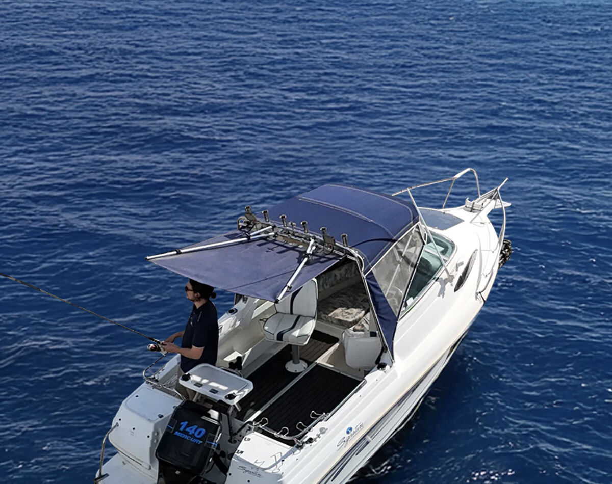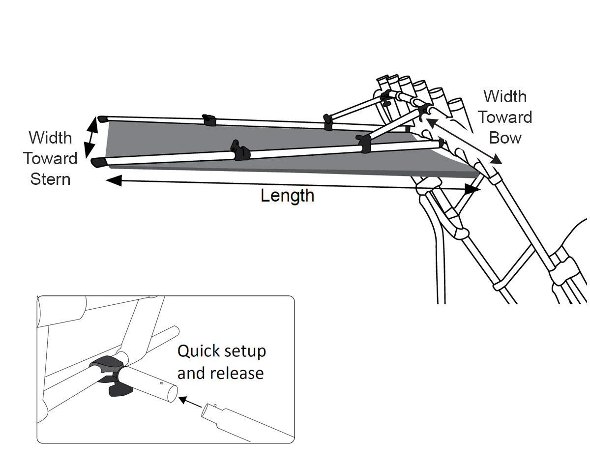 Mount it straight onto your existing bimini or rocket launcher rod rack tubing, it's designed to hold firm without flapping around.