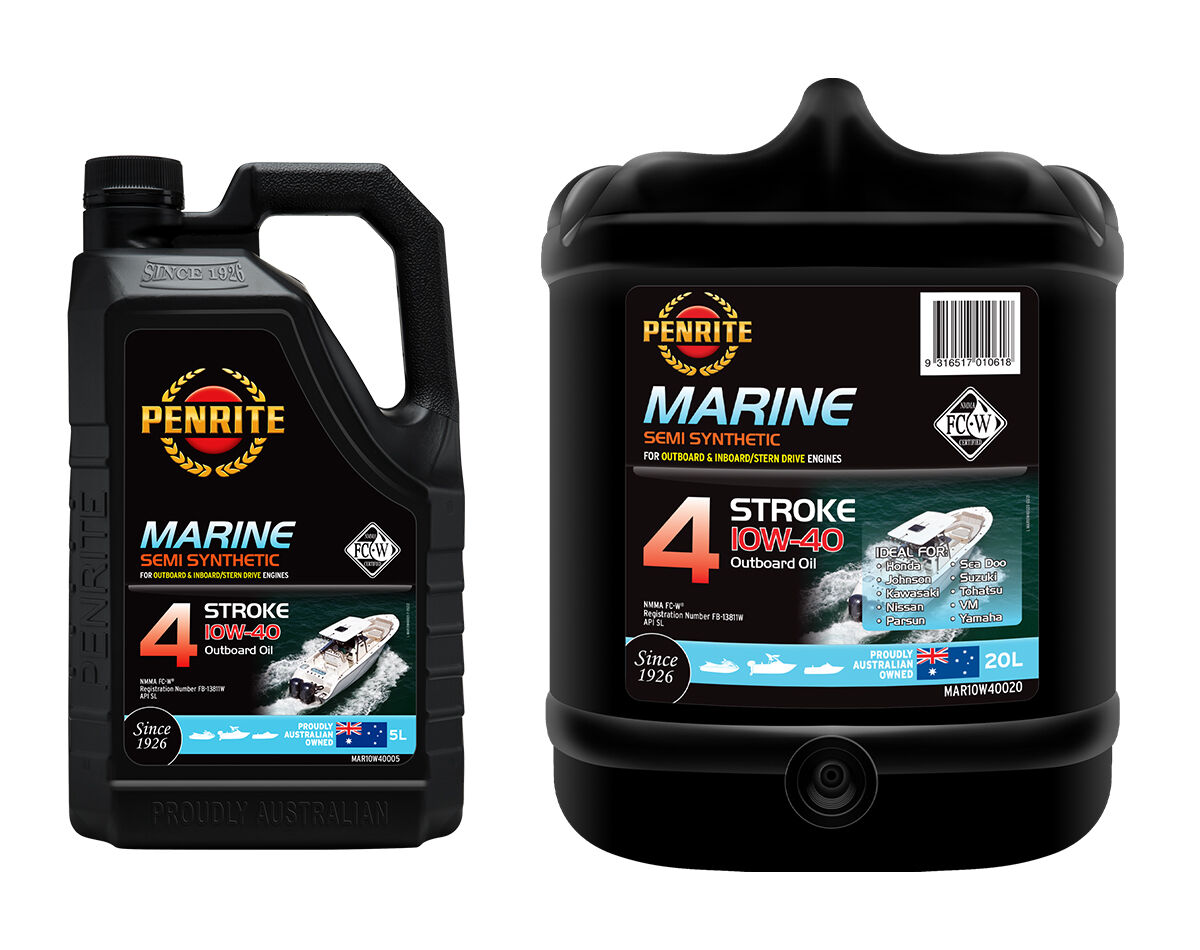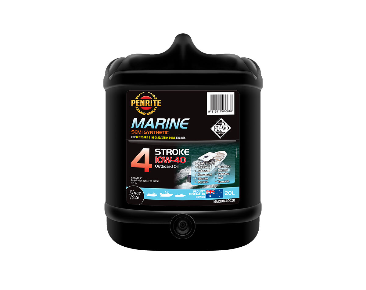 Premium NMMA FC-W® 10W-40 semi-synthetic marine oil with full-zinc anti-wear additives, rust protection, and versatile use in four-stroke outboards, personal watercraft, sterndrives, and petrol engines.