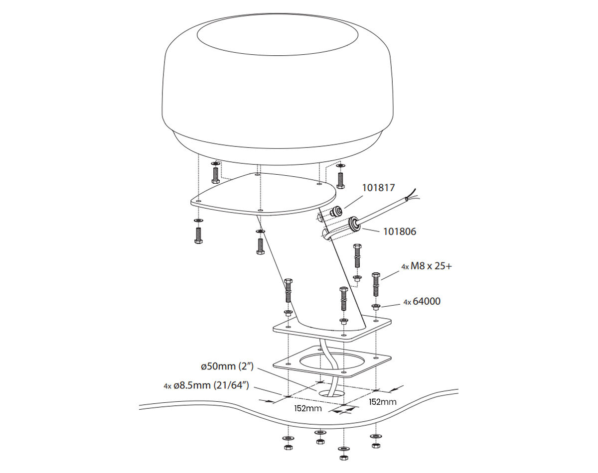 Designed to fit the most up-to-date radars from Garmin, Lowrance, Raymarine and Simrad. Small mounting footprint of only 150mm (6") it’s ideal for installation on narrow arches or RIB A-frames.
