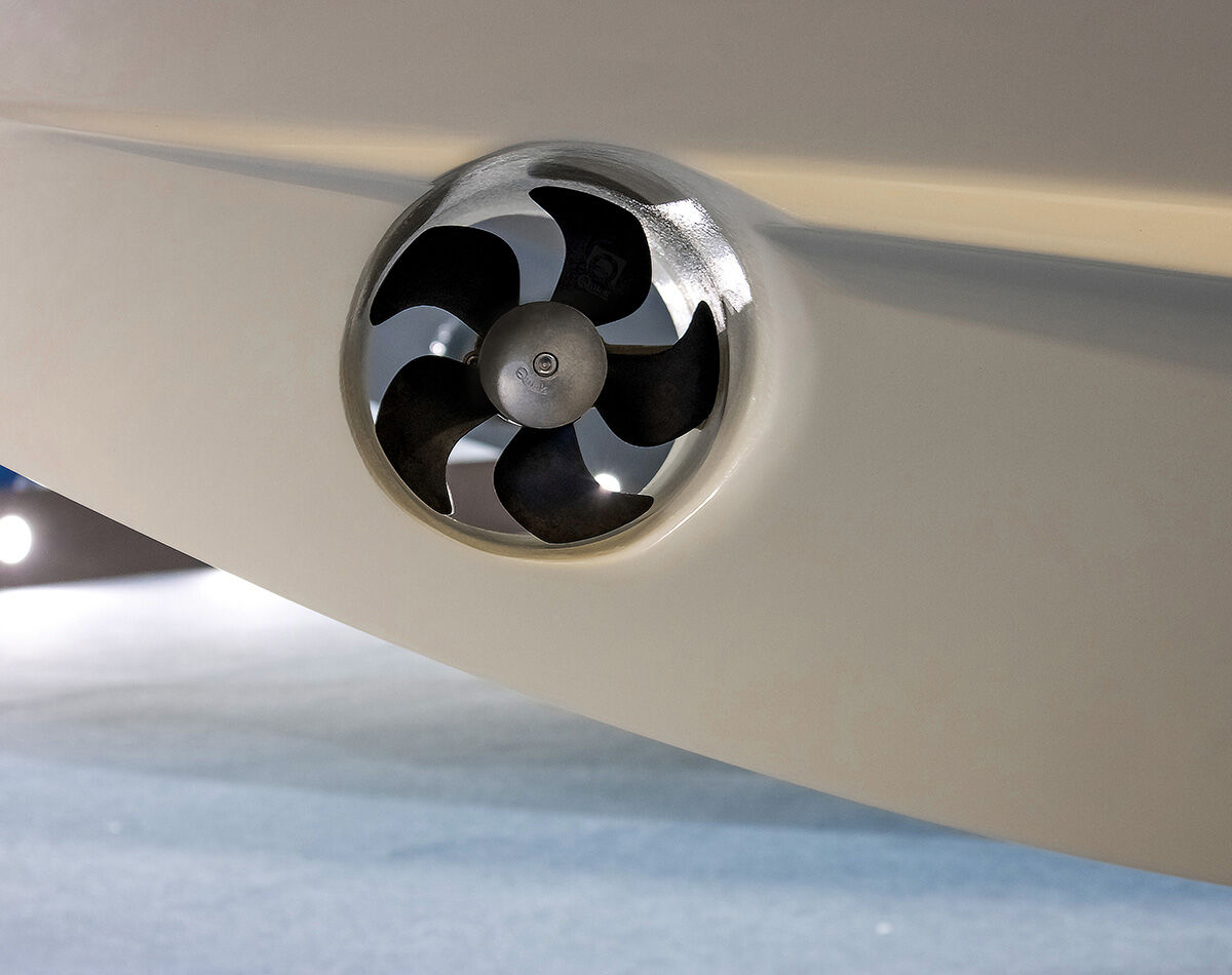 The 4-blade propellers guarantee maximum thrust performance and reduction in current absorption. They are made of composite materials, resistant in every condition. The counter-rotating system offers better thrust performances. The two propellers have each been designed to suit left side and right side, to guarantee the same upper performances in both directions.
