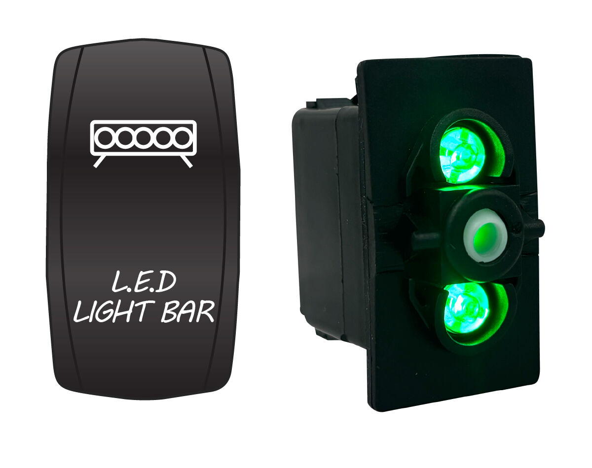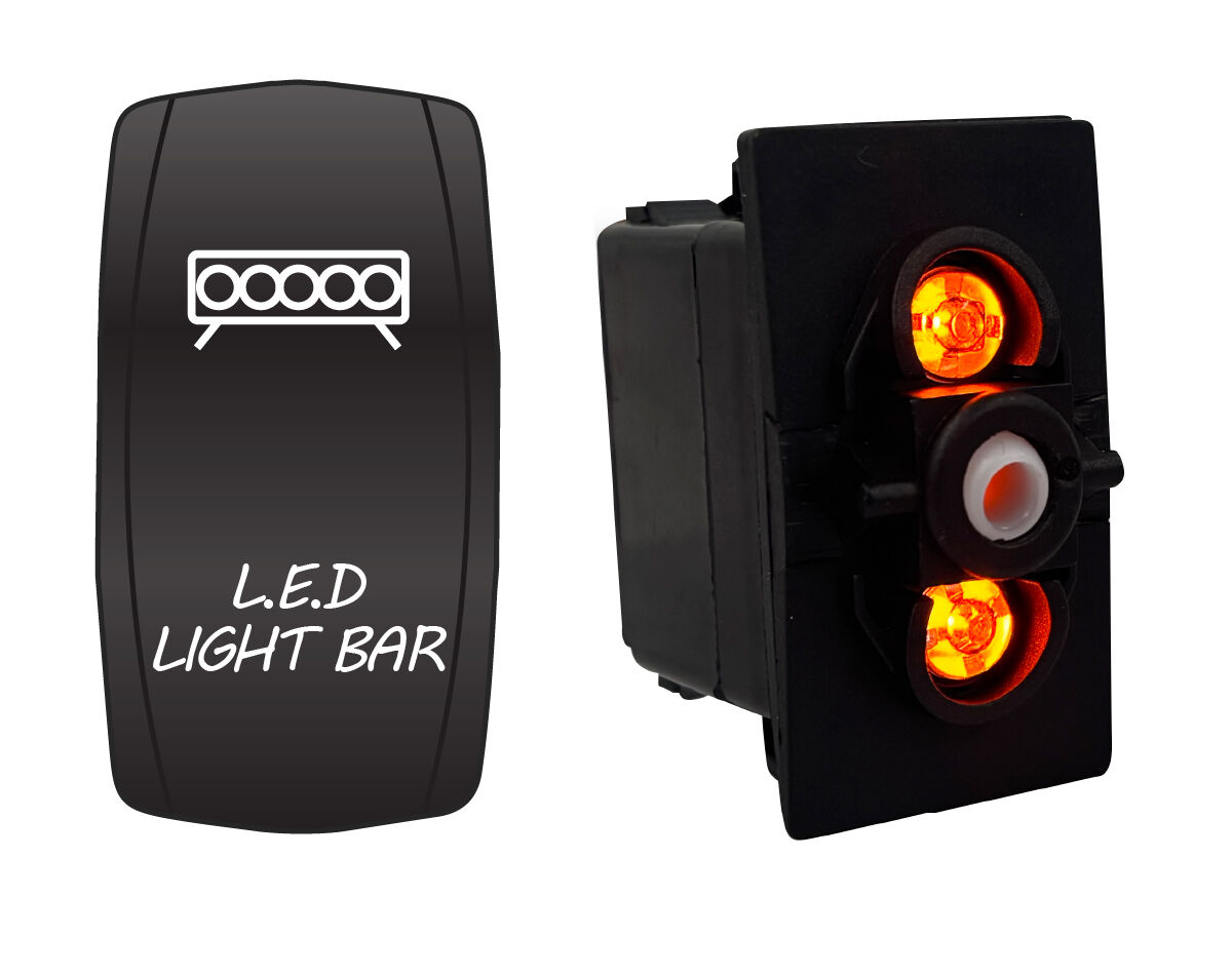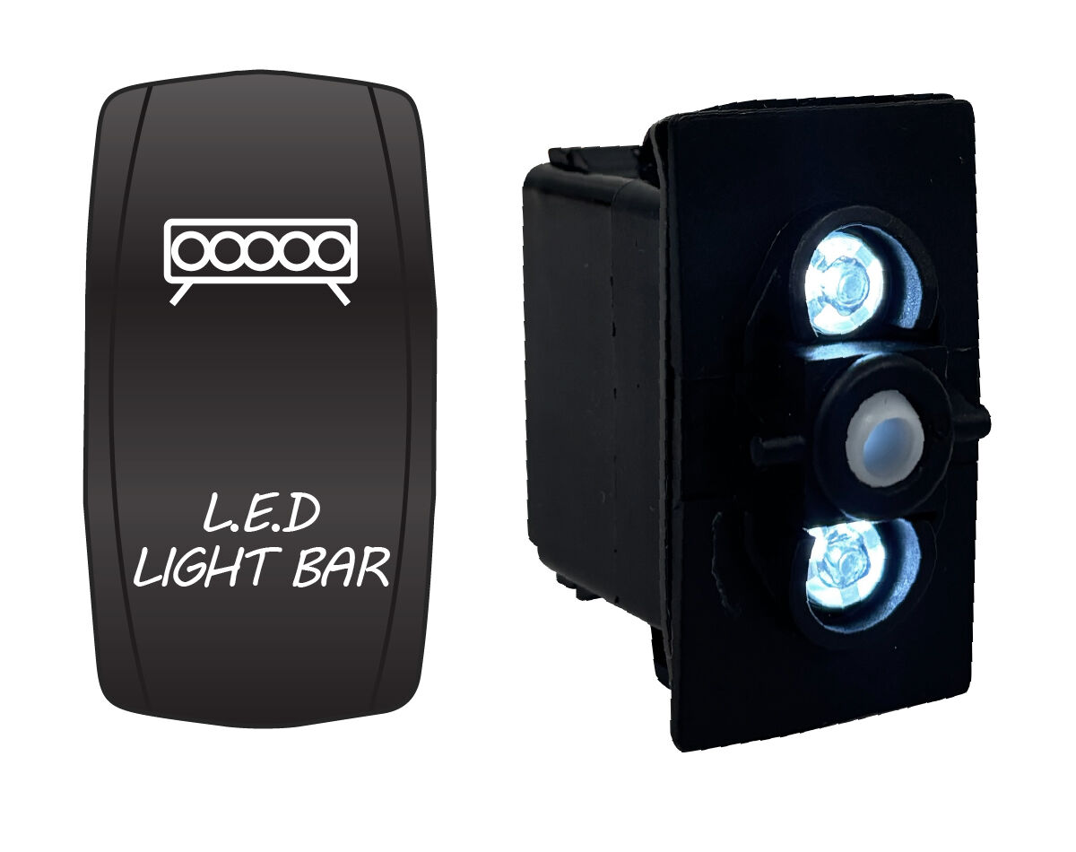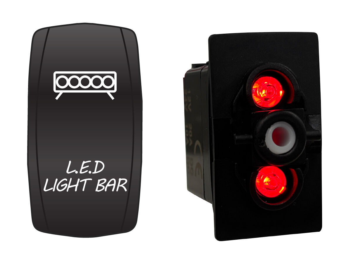 Water resistant, red or blue LED illuminated rocker switch with laser etched actuator cover. Dual voltage 12/24V equipped with durable and power efficient LED lamps.