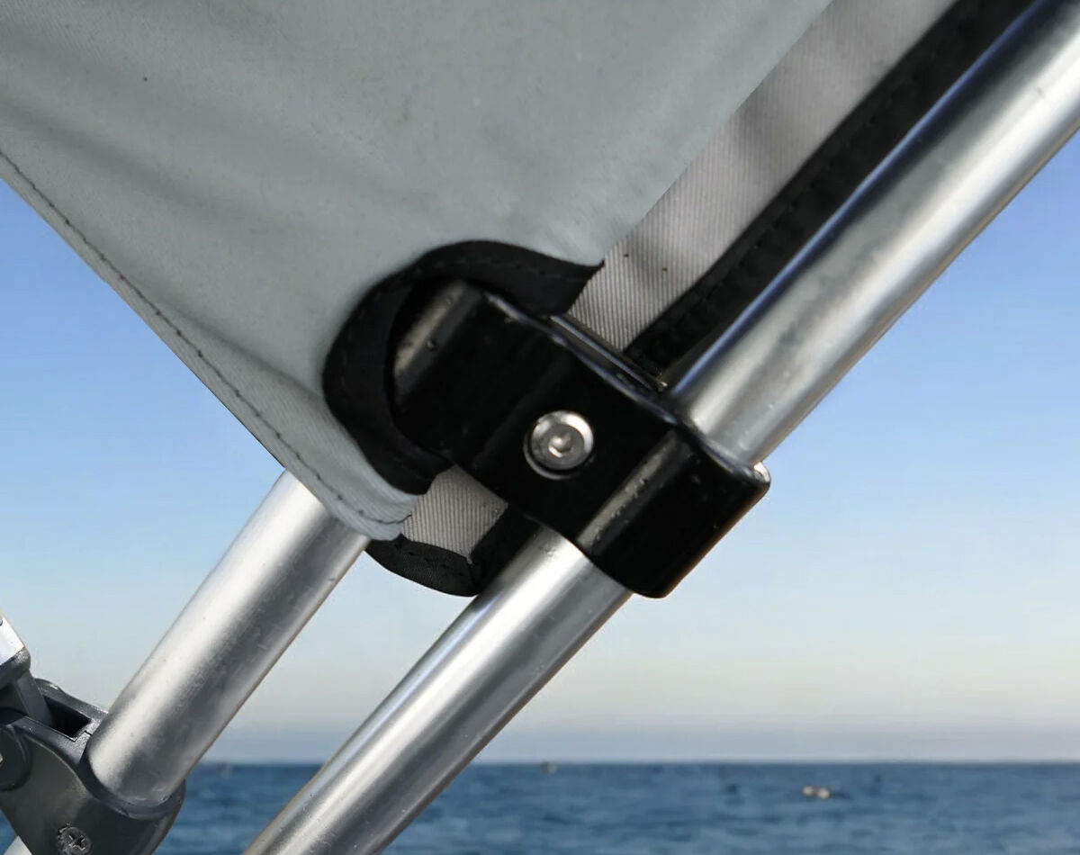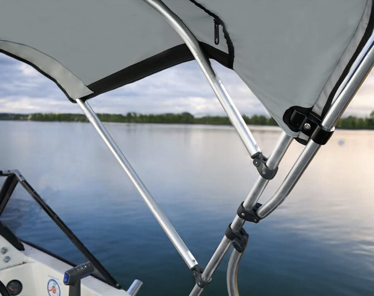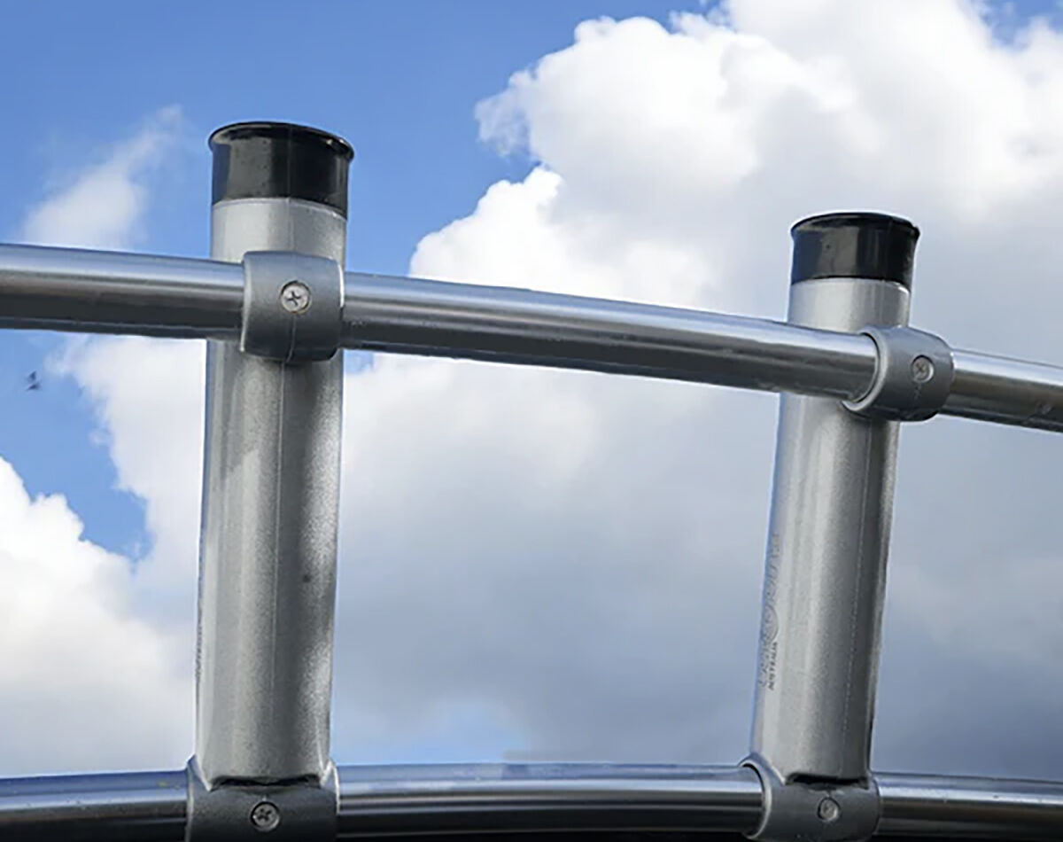 The Oceansouth Clamp On Rocket Launcher fixes easily to exisiting bimini tops or canopies via aluminium double knuckle clamps.