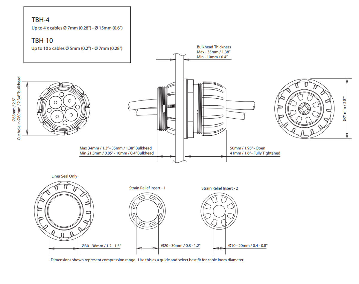 Designed for real-world situations, this neat little fitting lets you run up to 10 cables, and fits bulkheads ranging from 10mm to 35mm in thickness.