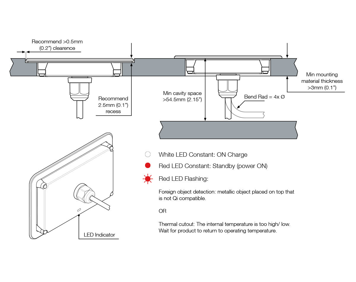 A rear-facing LED provides a quick installation and power check—red for standby, white for charging—so you know it’s ready when you are.