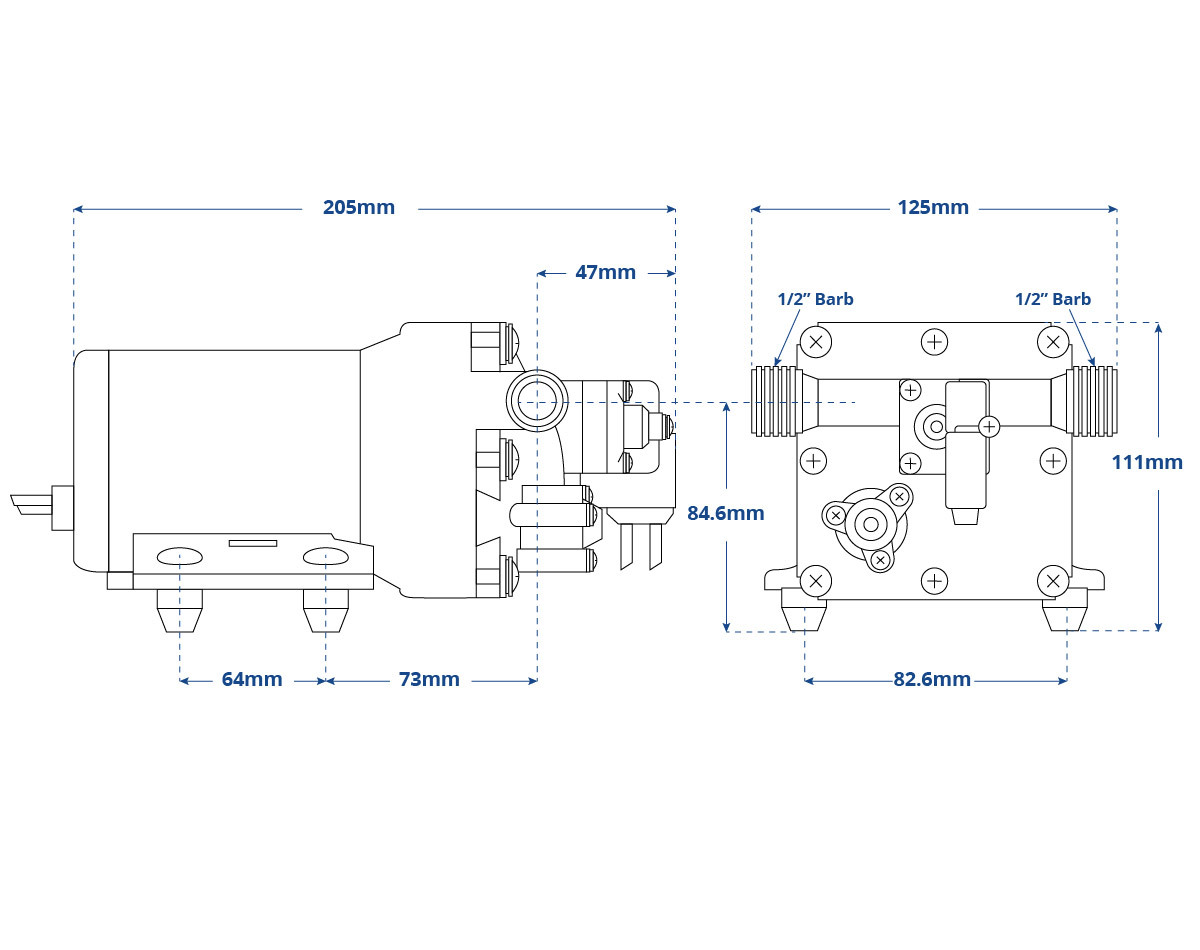 A smaller unit designed mainly for RV/Caravan use, the Trail King II freshwater pump features 4 independent chambers to deliver a smooth flow for up to 3 applications (galley, shower etc).