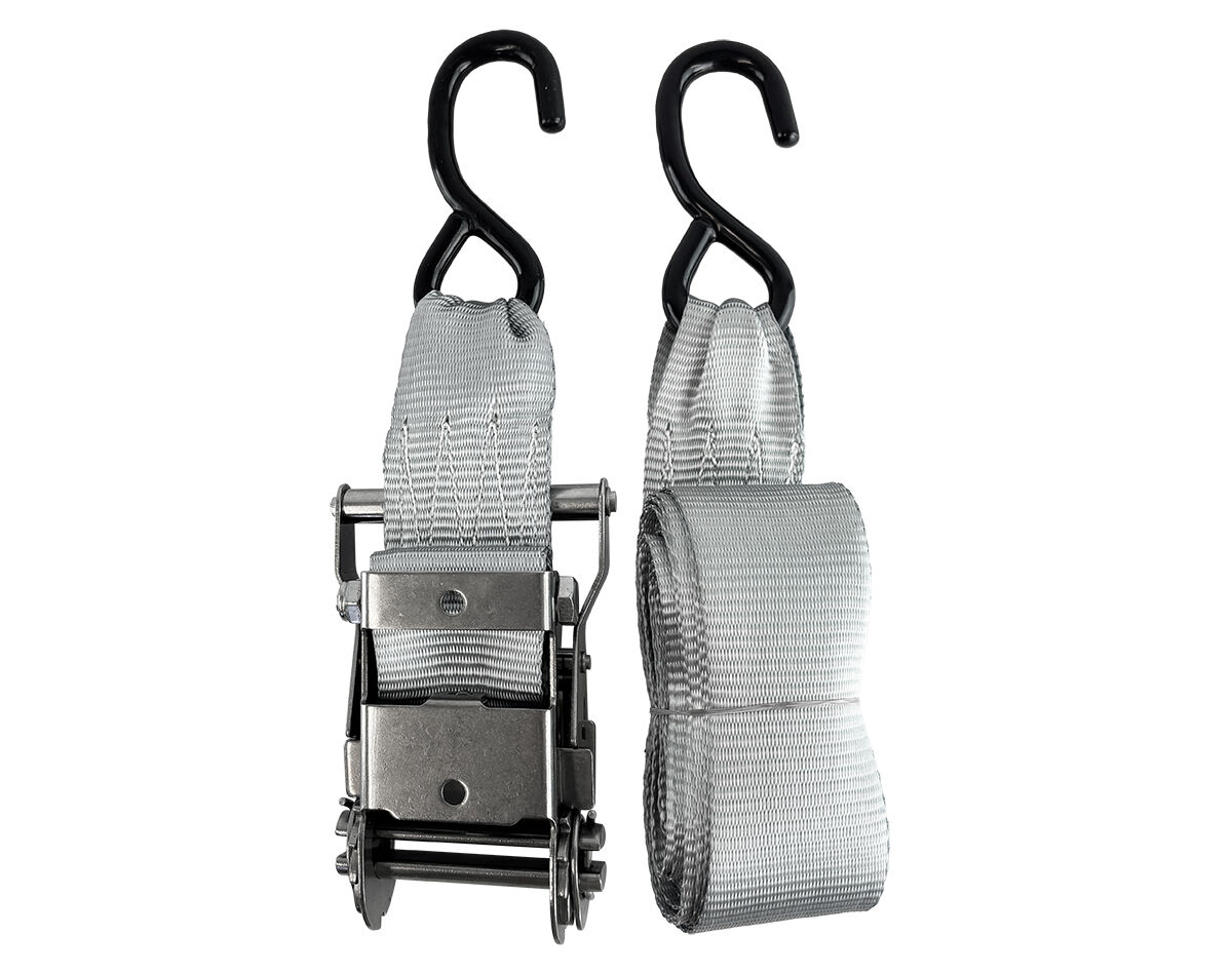 Designed for strength and durability, the stainless steel ratchet tensioner features thick UV-stabilised, reinforced nylon webbing and PVC covered 'S' hooks, giving you peace of mind on every journey.