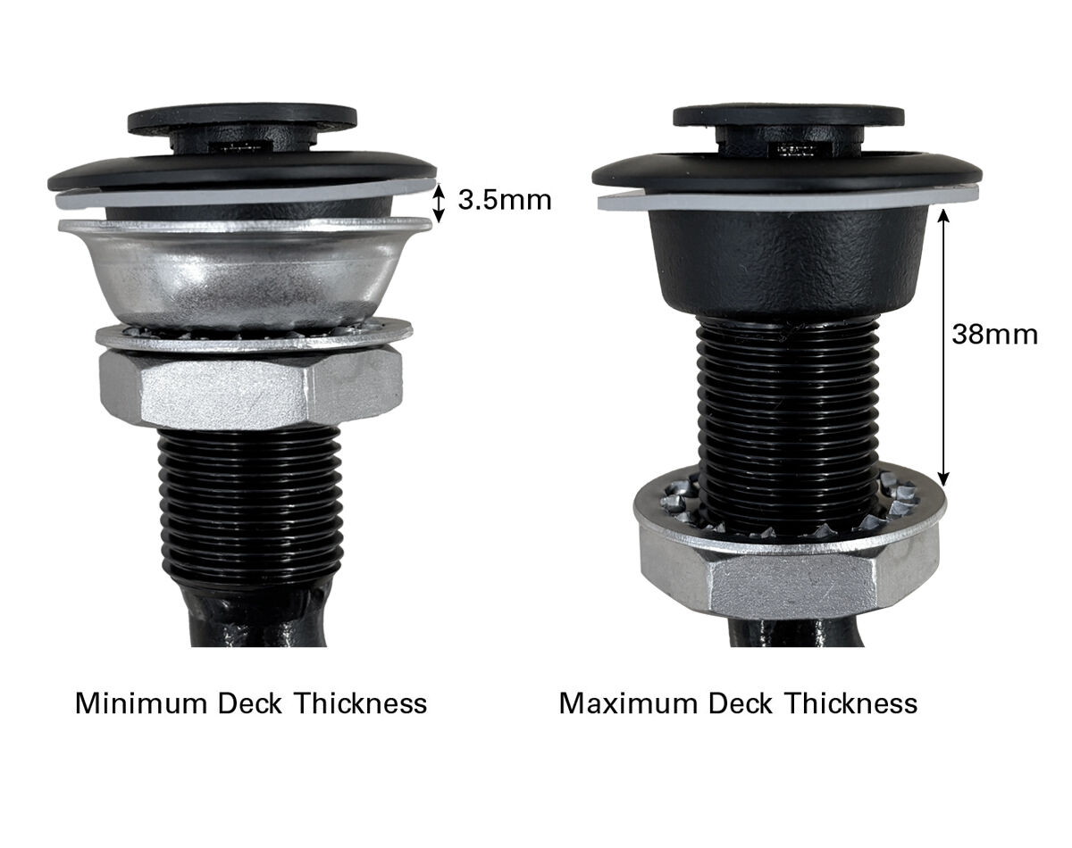 Available to suit 16mm hose (inside diameter) and features an additional flange for thinner hulls of 3.5mm minimum.