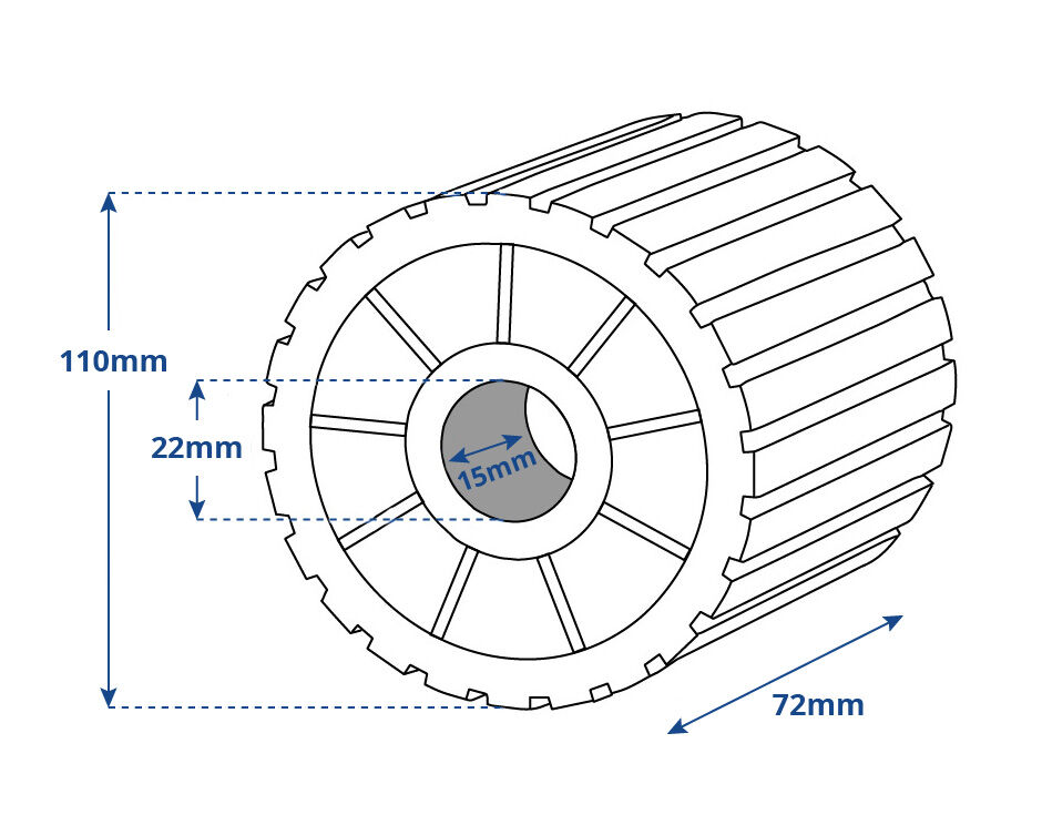 Wobble Roller Poly 72x110mm x 22mm Bore Red Black SKU: 1302672