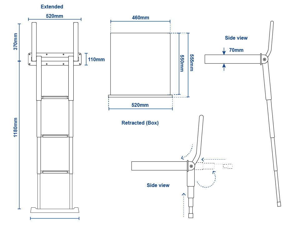 Keep your boarding area tidy and safe with this 316-grade stainless steel telescopic ladder.
