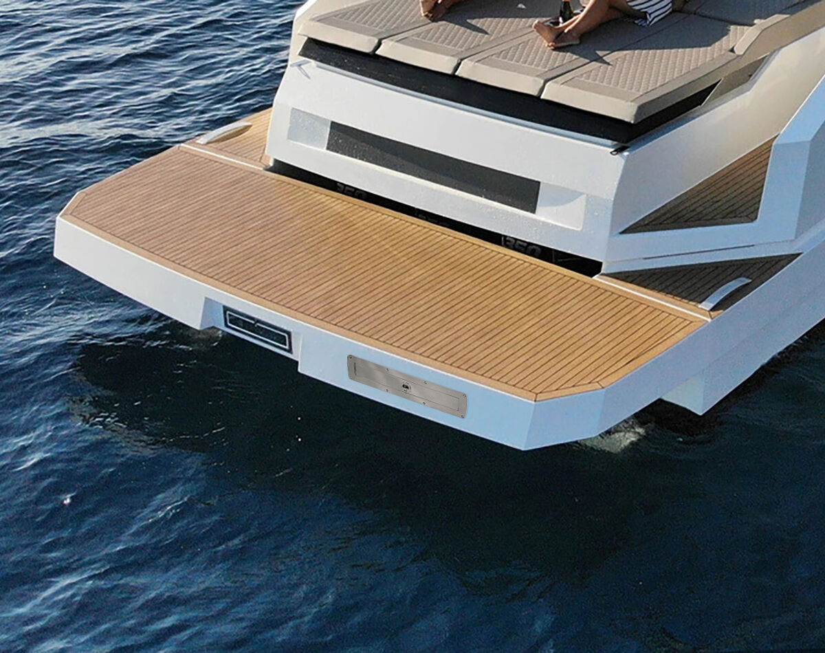Neatly mounted into your boarding platform, it stays completely hidden in its flush-mounted box when not in use, maintaining a clean, unobstructed transom.